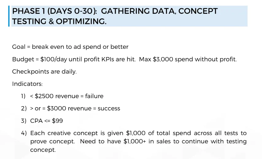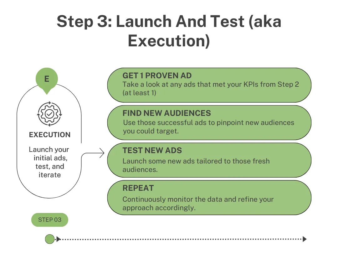 Get at least 1 proven ad: i.e. Any ads that met the KPIs you set in Step Two. These will serve as a jumping off point for optimization and testing.