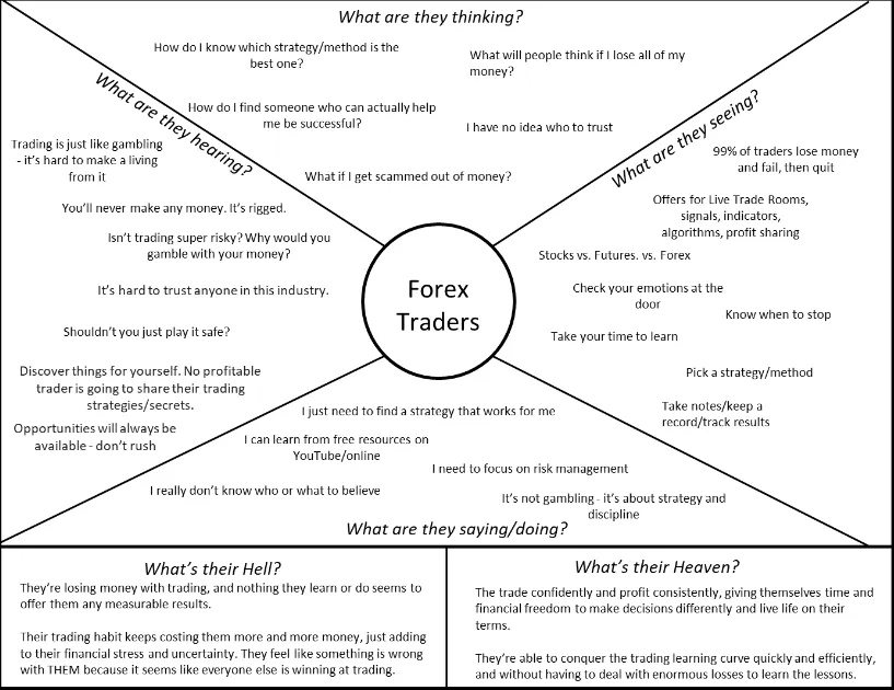 Pinpoint where your target customers are in their stages of awareness and buyer’s journey. I find that the best way to organize this information is by creating an empathy map.