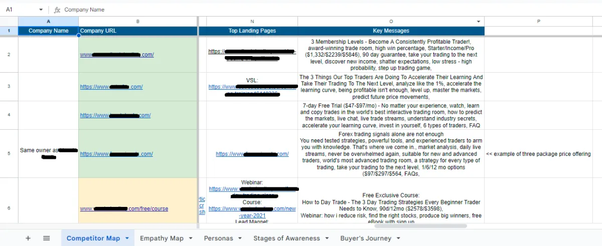 Analyze the marketing strategies of your competitors. Take a look at their top ads and landing pages. Keep a record of the key messages they use – like this: