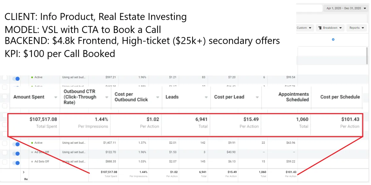 ✔️ 1,060 appointments scheduled over 8 months for a $4,800 product (with a $25k secondary offer)