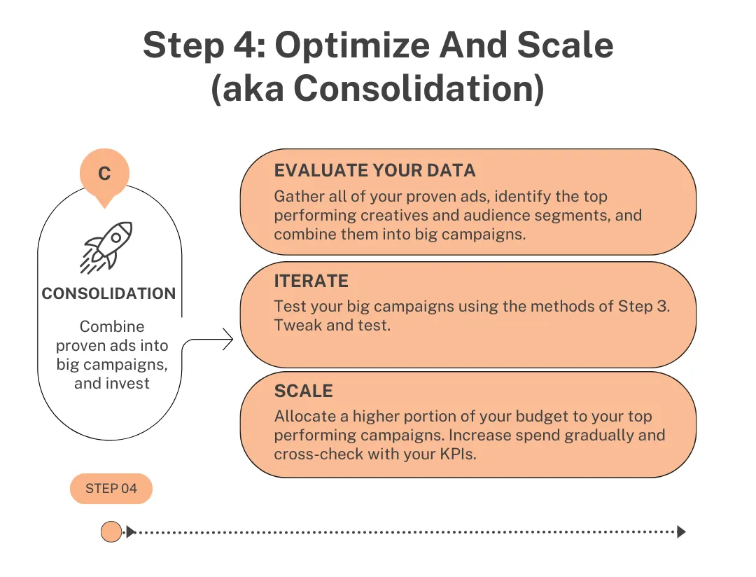 Scale: Allocate more budget to your proven winners. Gradually increase ad spend while monitoring performance closely against your established KPIs.